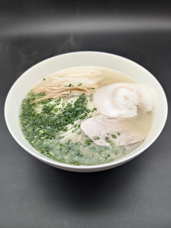 スープはクリア豚骨というジャンルに分類されている半透明半白濁の淡麗豚骨で、