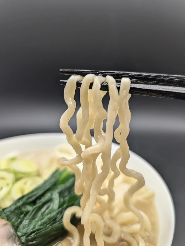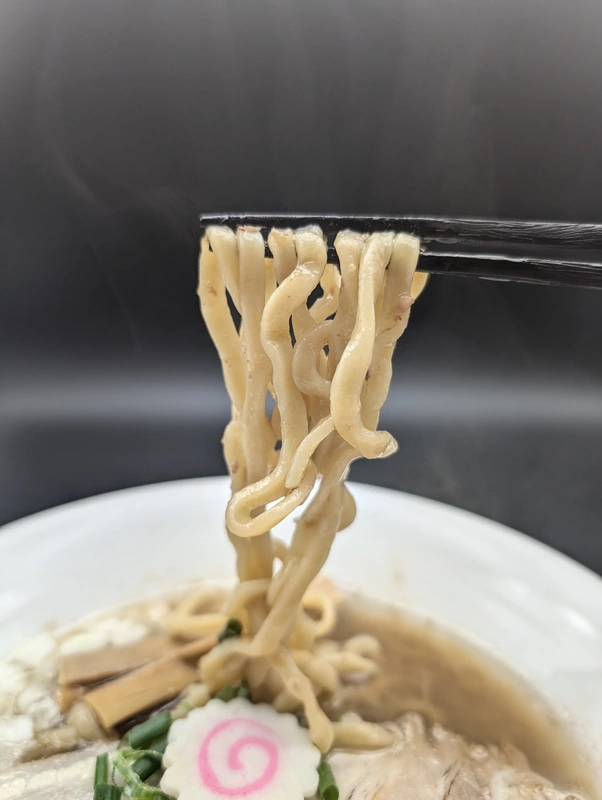 瑞々しい味わいともっちりとした弾力が特徴的で、強いうねりが濃厚なスープをしっかりと持ち上げてきます。
