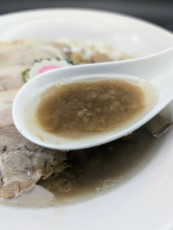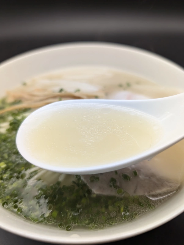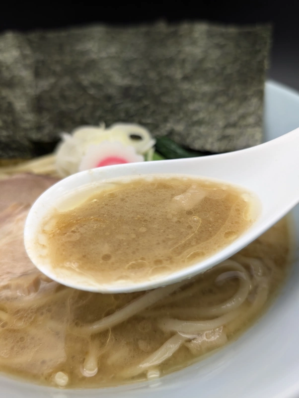 啜るとほどよい豚骨感と塩味、ぶわっと広がる旨味で美味しい。