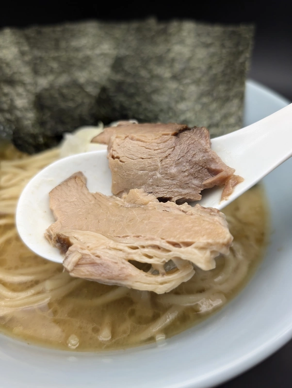 チャーシューは薄めですが、麺とスープと一緒にいただくとよいバランス!