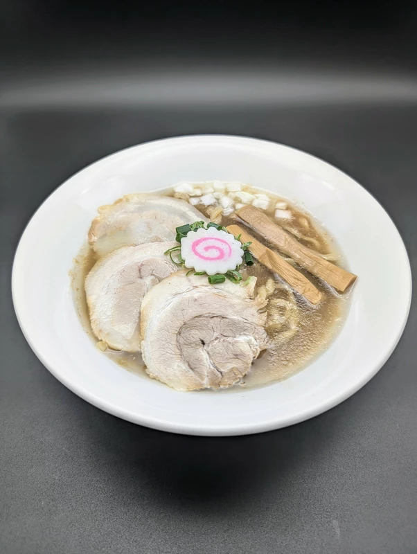スープはギリギリ清湯と呼ばれるやや濁りのある無化調で、豚をベースとした動物と魚介の多重構造。