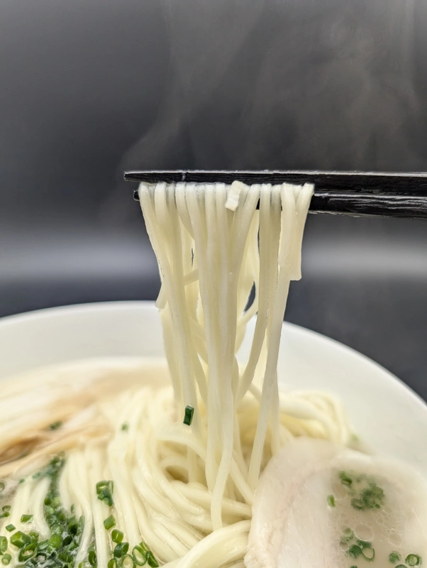 なお麺は長浜や博多のラーメンとタイプが違い、バリカタのように硬めに茹でると内部までα化せず生煮えになってしまう為、