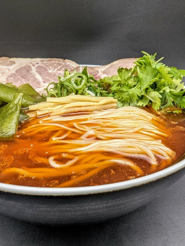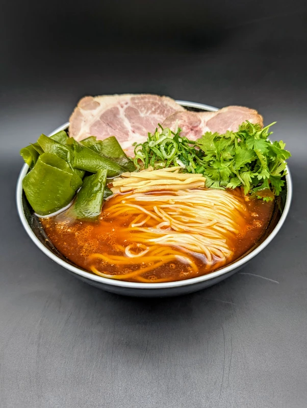 宅麺では二郎系にカテゴライズされてますが、あの豚骨醤油の感じのスープではありません。
