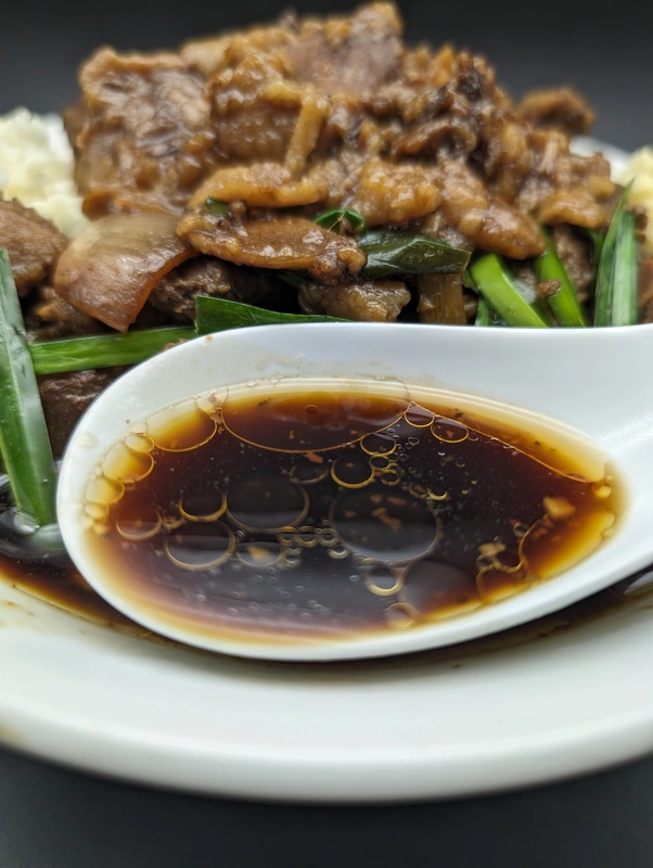 豚醤油って感じのベースに、ニラやニンニク、タマネギなどのスタミナ系野菜の旨みが溶け込んでいて、じんわりピリ辛、って感じです。
