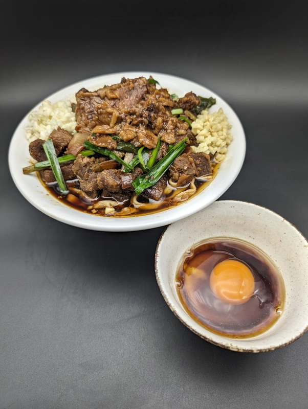 オススメはすき焼き食い用の生卵で麺を食べたあと、スープと生卵が良い感じに混ざった生卵の器に白米をぶち込んで、残った具材を乗せてかき込む!