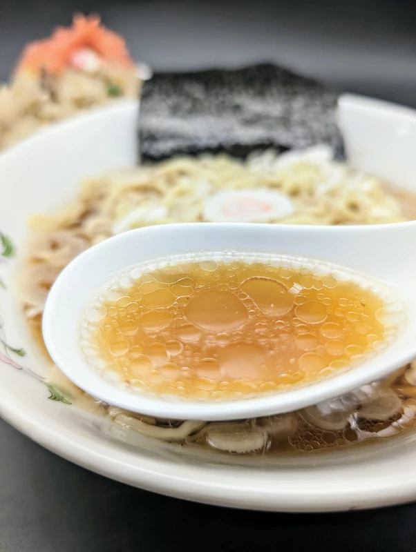 醤油がしっかりしつつも、主張しすぎず、鳥などの出汁の旨みもしっかりしていて、満足感のあるスープ
