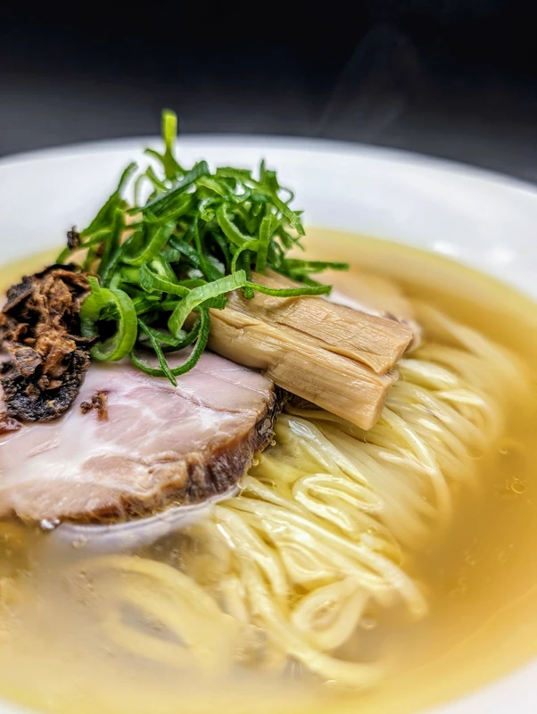 スープは澄み渡る無化調淡麗清湯で、まずは本枯や白口煮干など魚介の香りと甘味がフワッと口内に押し寄せ、