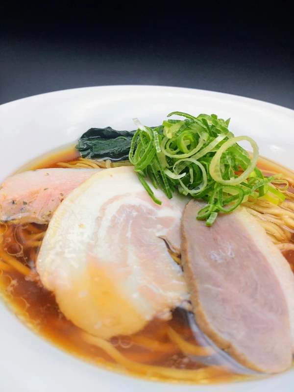スープは丸鶏をベースに、その他動物系と魚介系を繊細に組み立てたあっさり淡麗清湯。