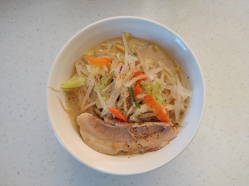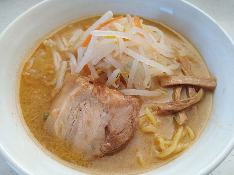 家系スープの中に坦々スープが合わさった様な物で、豚骨の旨味とピリ辛が絶妙なバランスで美味しいラーメンです。