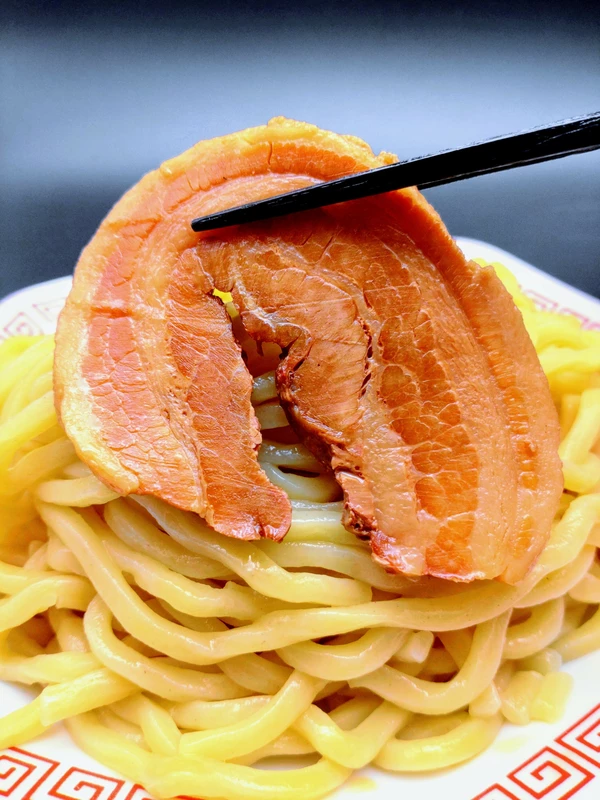 付属トッピングは赤身しっとり脂身トロトロな厚切りバラチャーシューが3枚。
