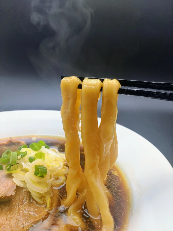 食感はモチモチとした柔らかみのある弾力としなやかでノビのある強いコシを持ち合わせ、