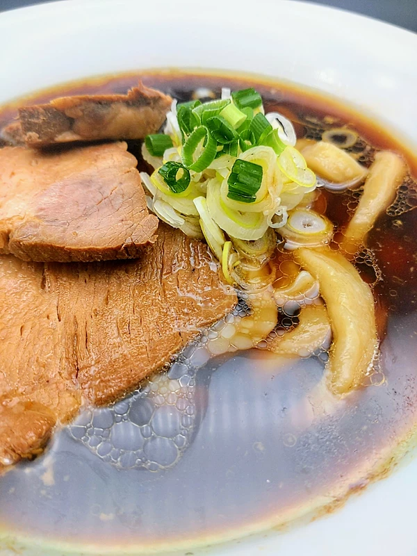 スープは昭和の町中華を思い起こすような鶏ベースの醤油清湯。