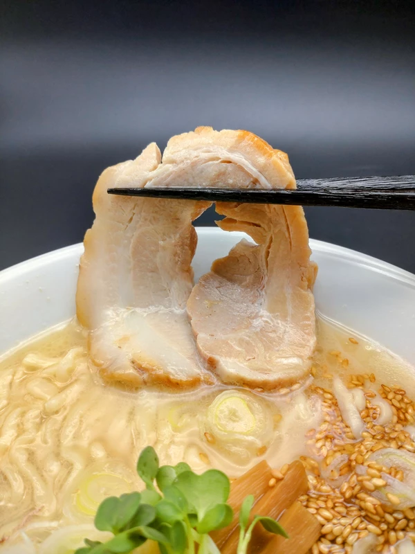 チャーシューはどちらも塩と胡椒のみのシンプルな味付けで、