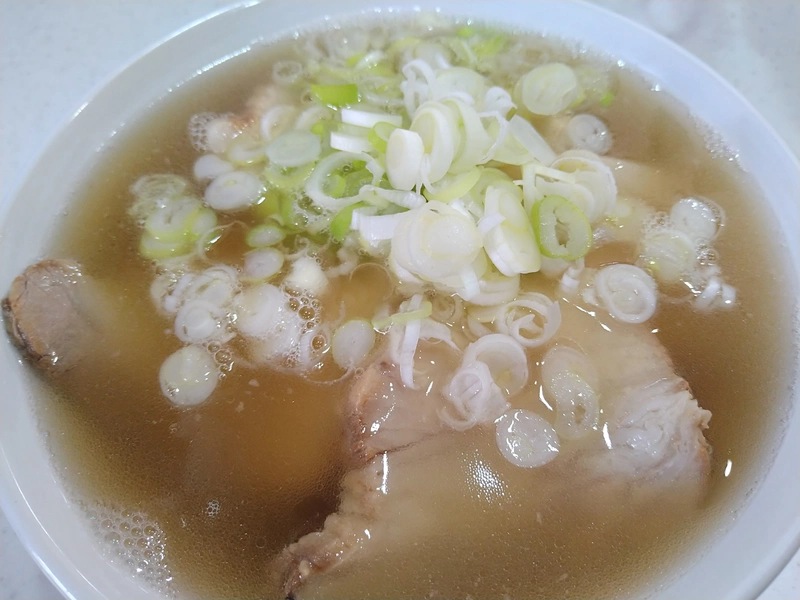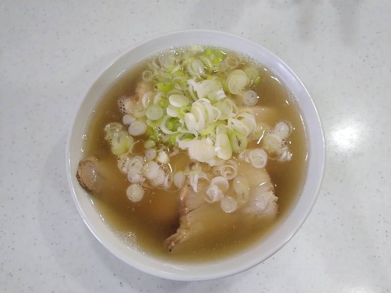 若干油の浮いたうす醤油色で魚介感が強いがスッキリしていて飲みやすい