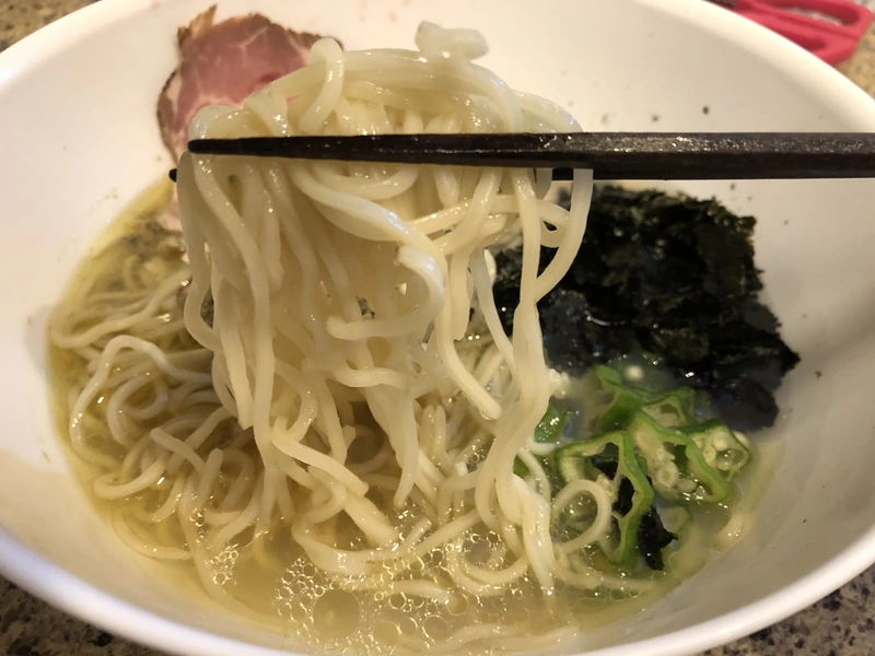 麺はストレート中麺で、加水率やや低めのコリコリとした食感。