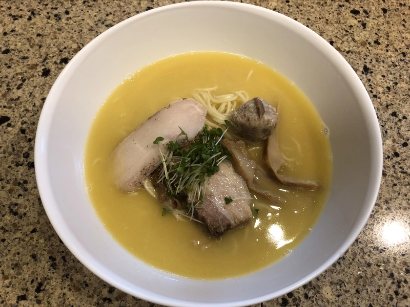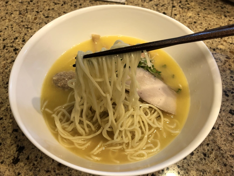麺も少しパツンとした印象を感じさせる、加水低めの細麺。宮城県産の夏黄金を使用しているようで、伸びにくいように卵白も加えられているよう。こいつは…どこかの特注麺かもしれないが、スープとの相性は突き抜けて高いのでは?と思わせるレベル!