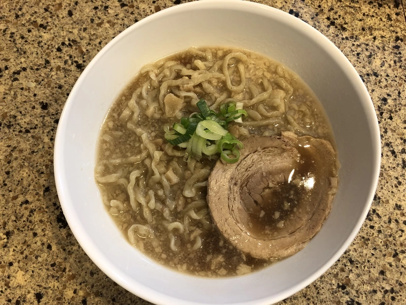 泥系煮干し。やっちまったなあ・・。これ系はやはり苦手。匂い(香りではない)も気になる。慣れると気にならないが、魚の内臓が腐ってきている系はちょっとねえ。くさやに通じる感じなので好きな人にはたまらないんでしょうが。あと、レアチャーシュー?の味が何もしないんですが。正常でしょうか?ラーメンウォーカーの信頼性も落ちてきたなと感じました。2食買って失敗。