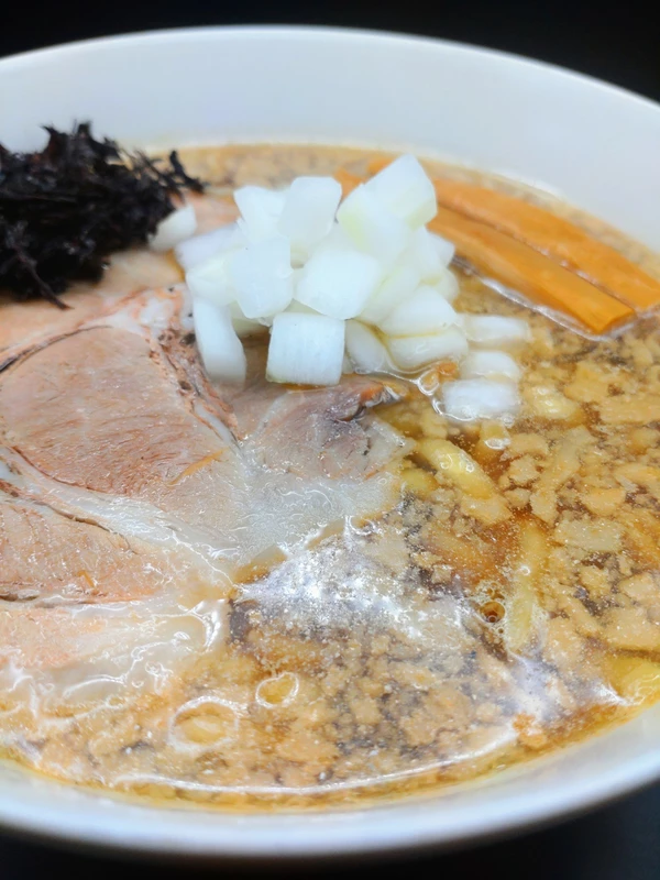 塩分濃度は2.1%なのでスープ単体だと高めですが、背脂、麺、玉葱、甘味との全体的な調和で考えられており、