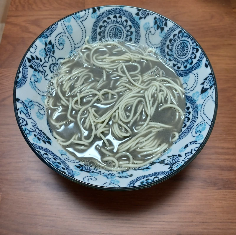 スープを飲み干す二歩手前で箸を置いて完食です。