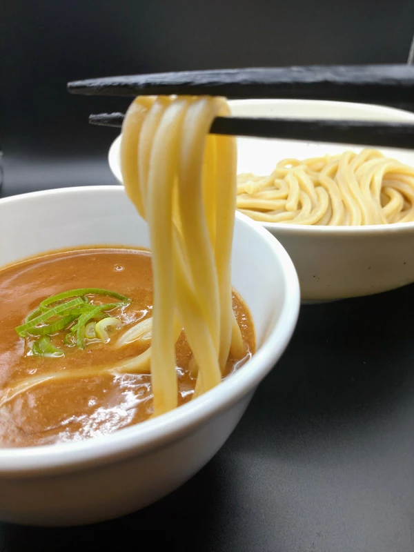 つけ汁は魚粉に頼らず節の風味をグッと押し出した濃厚豚骨魚介。