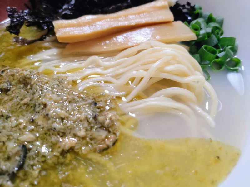 スープは白濁色でクリーミーながらクッキリとしたクリアな牡蠣テイスト。