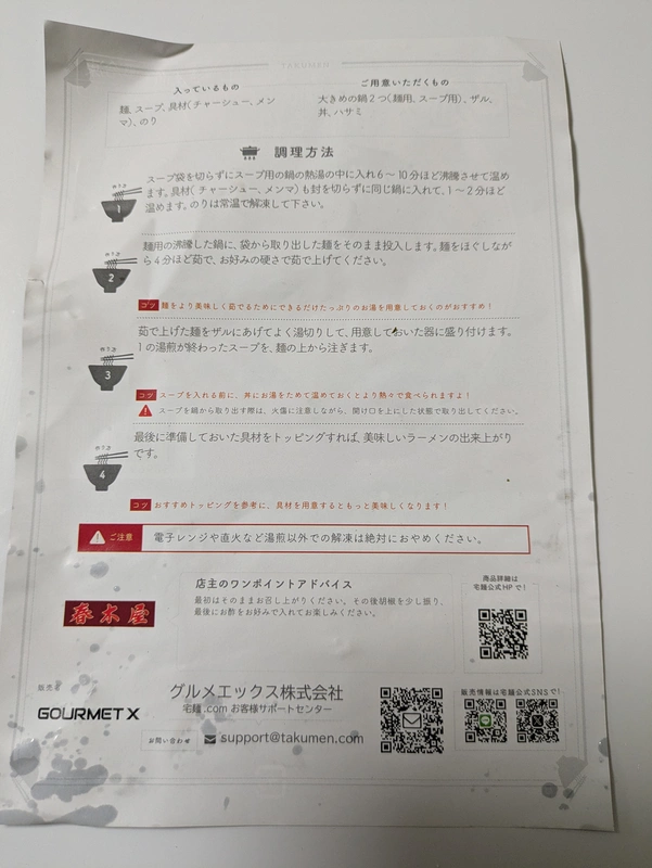 宅麺から来たメールに送料無料の4商品セットがあるという記載があったので、