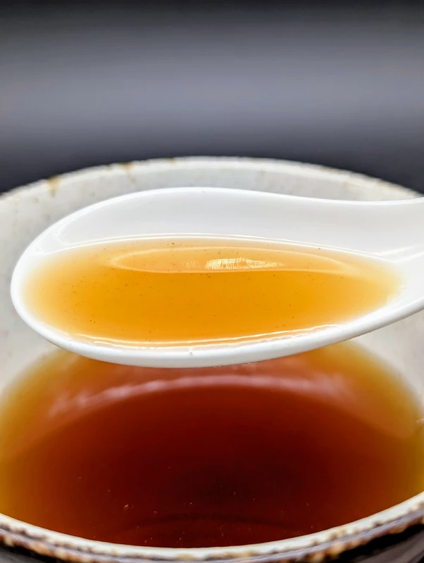 くっきりと澄んだあっさり仕立てで、塩分濃度は約2.0%と濃口醤油の塩味もしっかりと効いています。