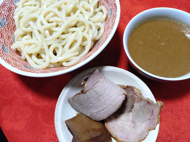 鶏の旨味を感じる琥珀色のつけ汁は表面に浮いた牡蠣油の風味も相まって最後まで美味しくいただけます。中太ストレート麺は適度な歯応えで喉越し良く、最初に塩をかけて食べましたか相性抜群でこれだけでも十分に楽しめます。勿論つけ汁とも良く合いますが塩味が強いので麺は半分程つけるのがおすすめです。鶏むね肉チャーシューと豚ロースチャーシューは肉の旨味を感じますがつけ汁の塩味を考慮してか薄味になっています。おすすめトッピングの白髪ネギとメンマを加えて美味しくいただきました。