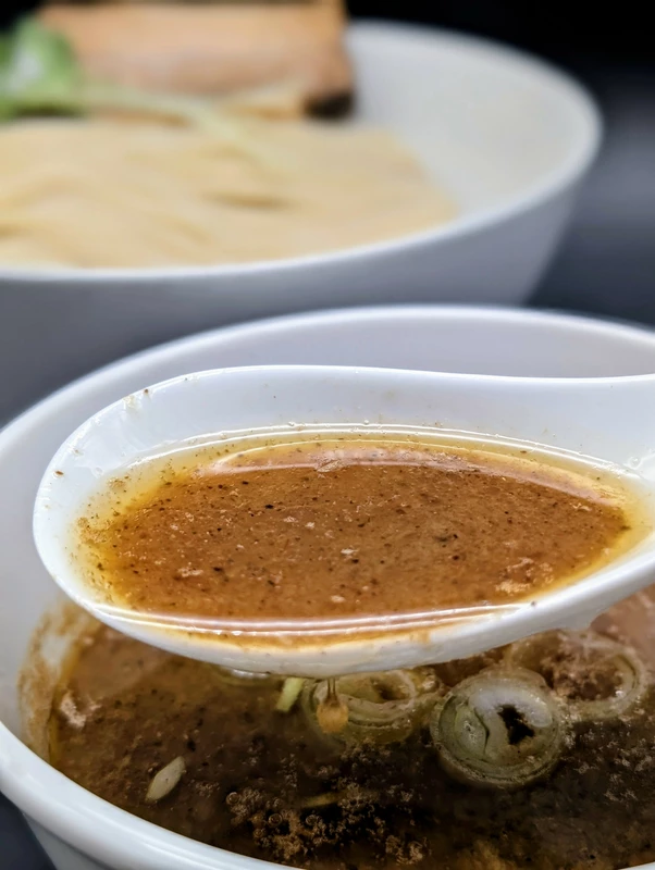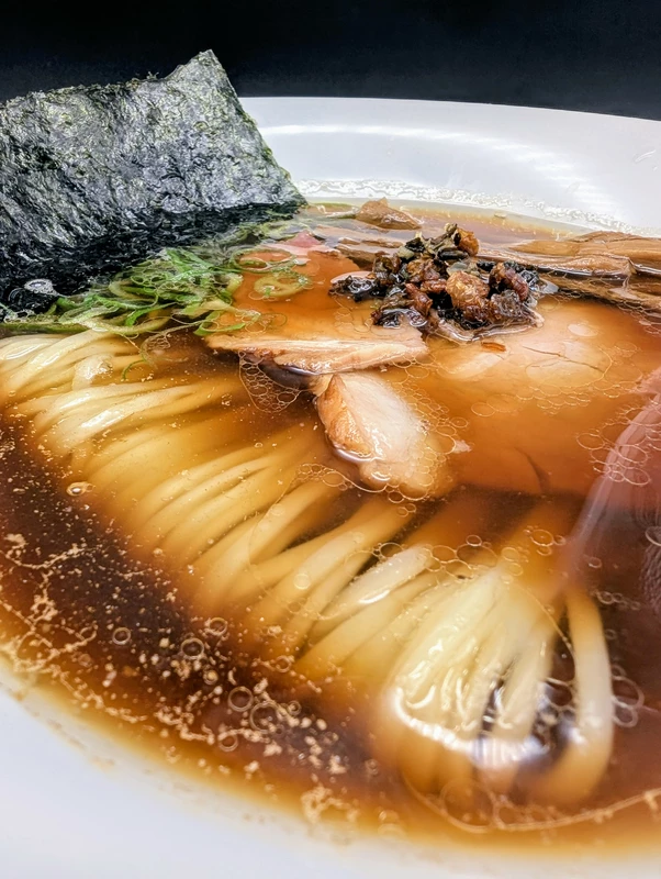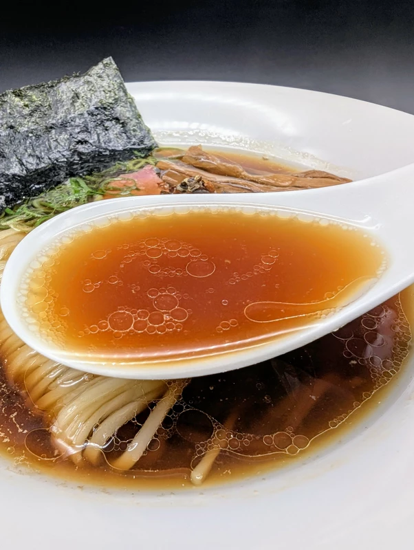 同店の醤油と比較すると、塩のほうがカエシの旨味がまろやかで、オイル感がやや軽く、キレやカドのない、すっきりクリアな後味が楽しめます。