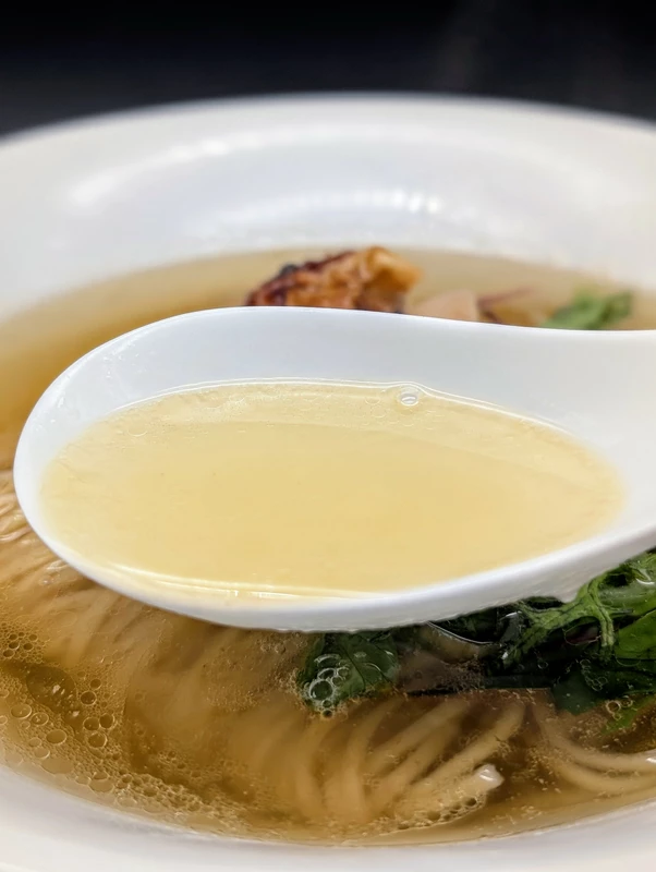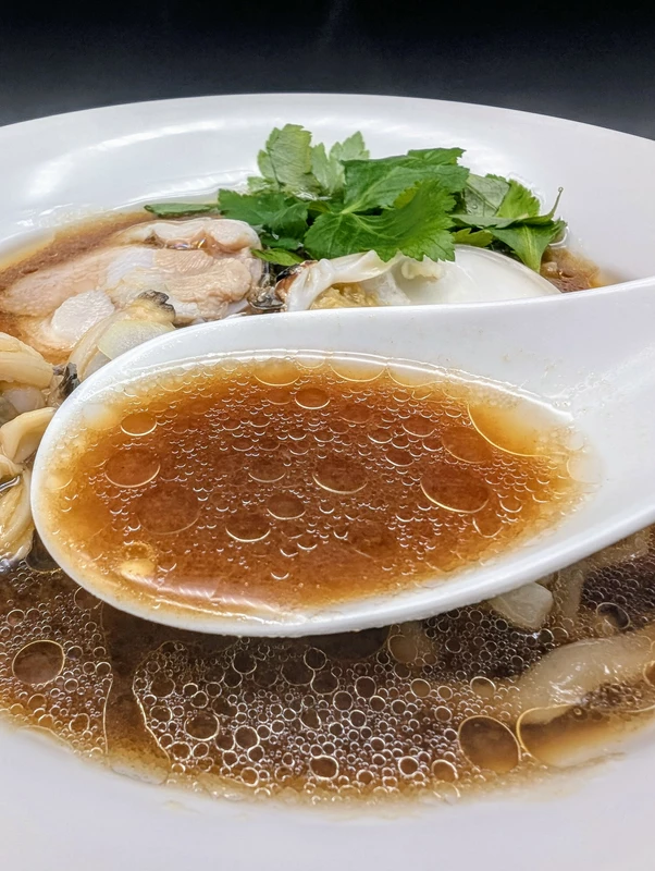 ハマグリとアサリとホタテによる甘味&コハク酸の旨味がギュギュッと凝縮した、上品でクリアな和出汁となっています。