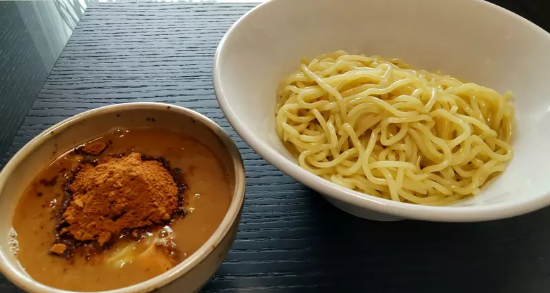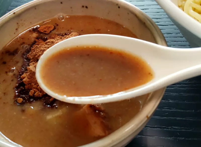魚粉を入れる前は、少しピリ辛な野菜と魚介豚骨の風味で、野菜の旨味を感じる濃厚クリーミーなスープ。 魚粉を全投入すると、一気にまたおま系の味わいにシフト。