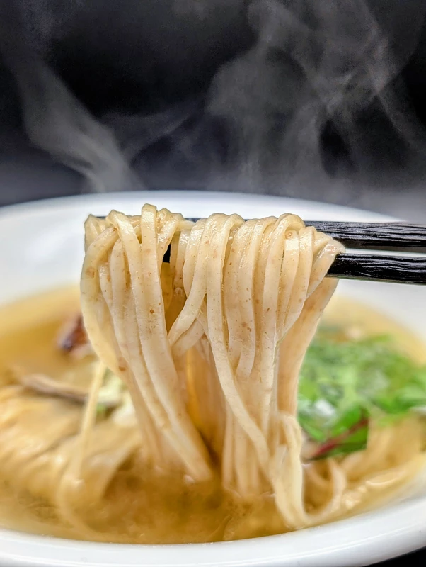麺肌は滑らかで、コシ、ハリ、ノビのある食感に加え、麺自体の旨味やスープの持ち上げも申し分なく、