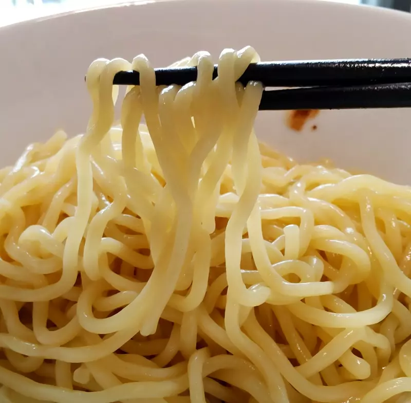 気持ち幅細めの麺ですが、普段他のお店でいただく食感とは違うのですが、なぜか落ち着きます!!粉がちがうのでしょうか!?
