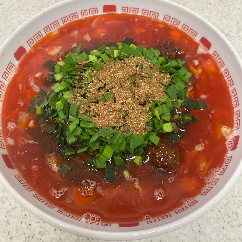 辣を感じられる真っ赤なスープに麻の痺れが鼻腔をくすぐってめちゃくちゃ美味しいやん😆