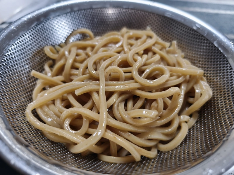 茹で時間を長くすると、モチモタな麺になります