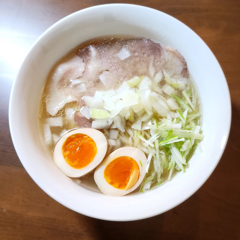半透明の美しく輝くスープ。1口目はがつんとしじみ、苦味等も含めて120%しじみを感じる味わい。少し強すぎるかなと思ったものの2口目は、苦味にもなれ、しじみの旨味をダイレクトに感じることが出来る。煮干しの濃いラーメンもなれていないと苦味が目立つが、なれてくると強烈旨味を味わえるのと同じような感覚。下に旨味の岩石を設置されたような、強い旨味が口全体に広がる。薄切りのチャーシューは、油も乗っておりしっかりお肉の味もする。個人的には薄味の味玉がスープによくあいました。