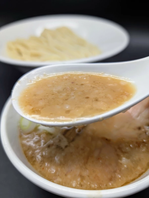 つけスープは塩味がしっかりしながらも、背脂が甘く、トータルで調和の取れたお味でした!