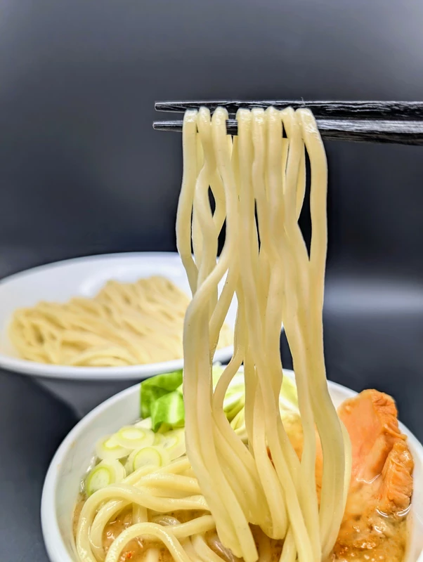 麺表面の微細な凹凸が重めのスープもしっかりと持ち上げます。