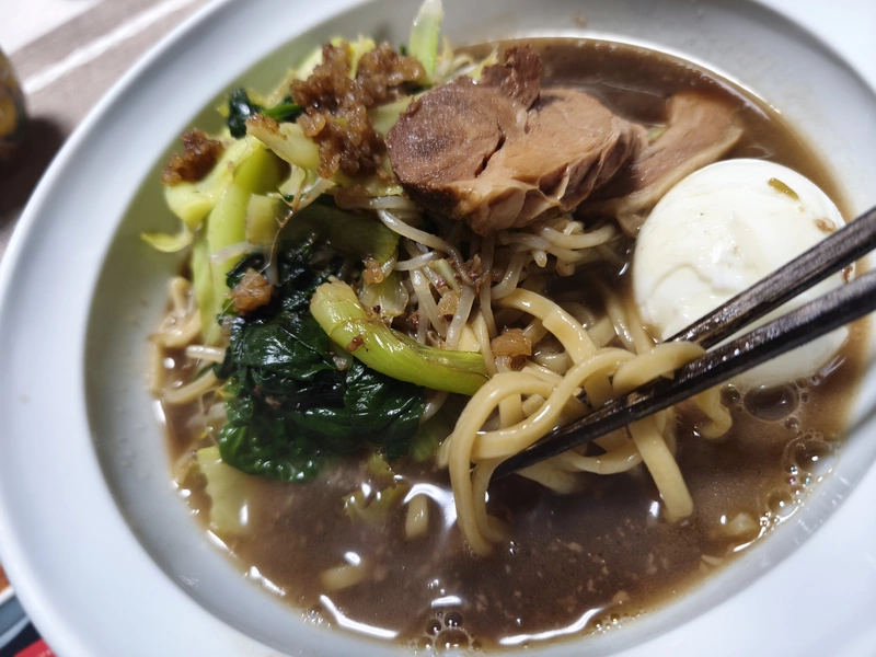 トッピングを追加するならネギや生キャベツ、青菜あたりが定番で、唐辛子や黒胡椒でピリッと辛味を加えるのもよく合います。