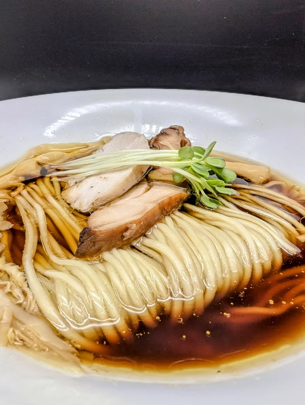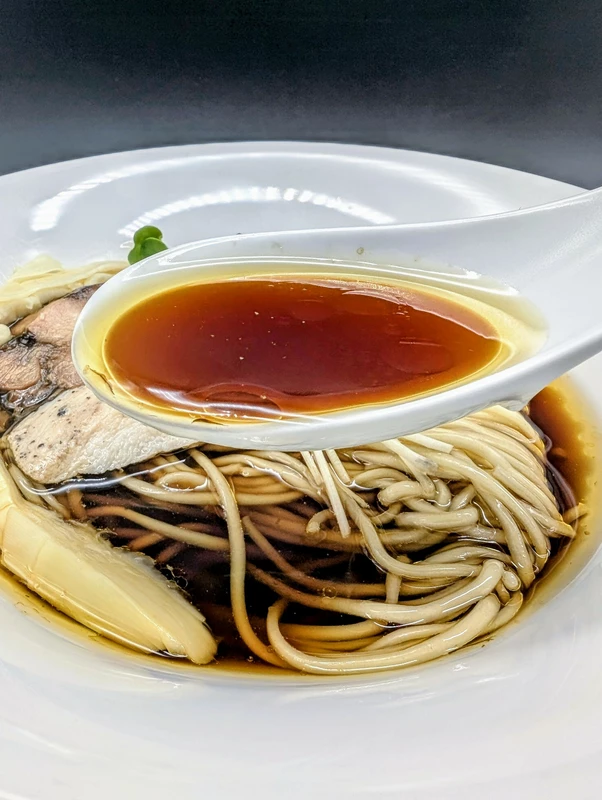 香味油からは鴨が明確に漂い、塩分濃度は約1.5%とやや低めながら、出汁のふくよかな旨味と醤油の深いコクのある、滋味深い穏やかな味わいとなっています。