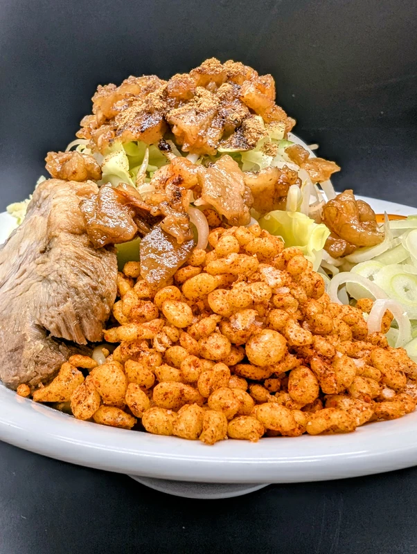 背脂粒もInスープなので、ヤサイの上にトッピングしたい場合は事前にサルベージしておきましょう。
