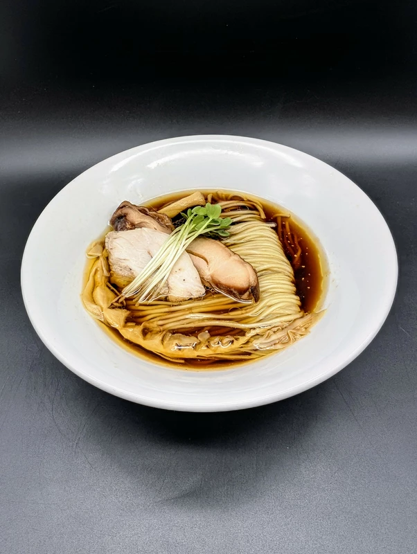スープはクリアに澄んだ鶏ベースの淡麗醤油清湯。