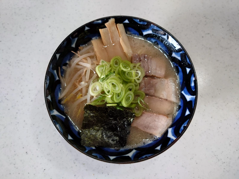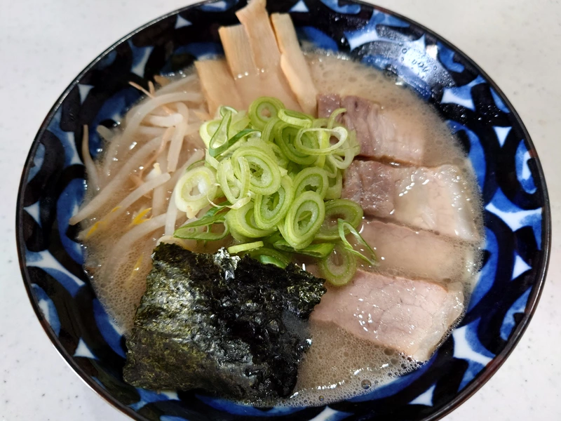 ※写真は自分でもやしとチャーシューを別皿でトッピングしております。