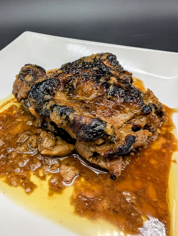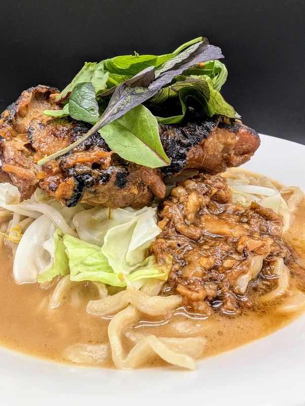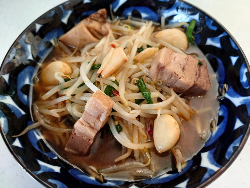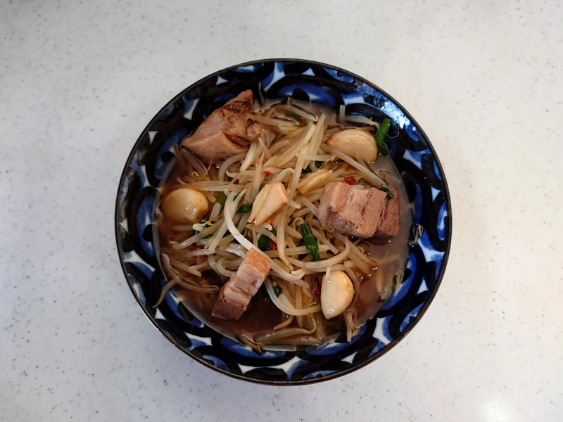 ニンニクと豚背脂の効いた甘口の醤油ソースで味付けされており、