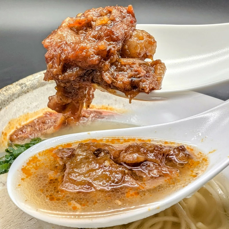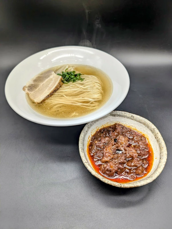 スープは牛ゲンコツなどの牛ガラを時間をかけて低中温で炊いた牛骨醤油清湯。