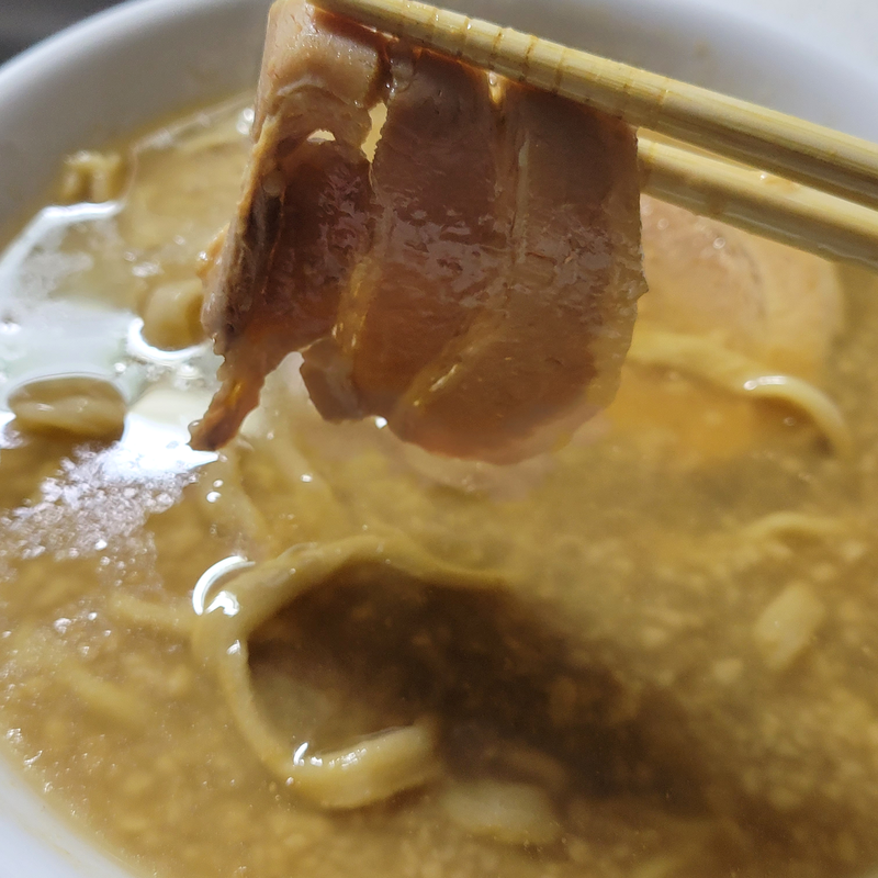 チャーシューはちょっといいカップ麺くらいの厚みって書いている方がいましたが、まさにそれでしたw ペラッペラが2枚。美味しかったので普通の厚さで食べたかった!(泣)