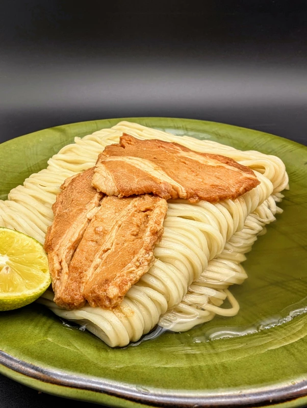 付属トッピングはInスープで、軟らかく煮られた豚肩ロースと豚バラのチャーシュースライスが1枚ずつ。