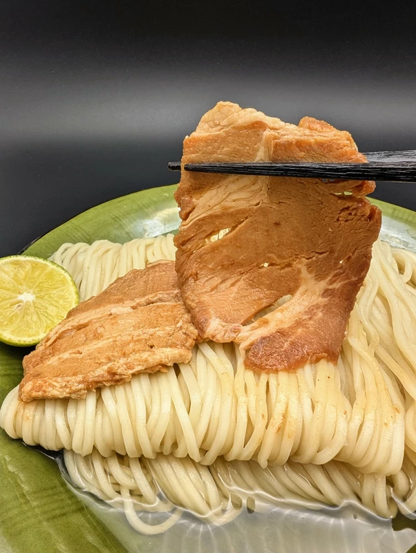 レシピ通りの時間豚入りスープを湯煎したのに、豚がデカ過ぎる故、中が冷たかった。追加で豚だけ少しレンチンして加熱した。