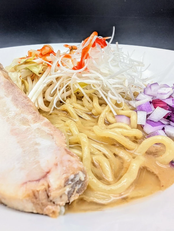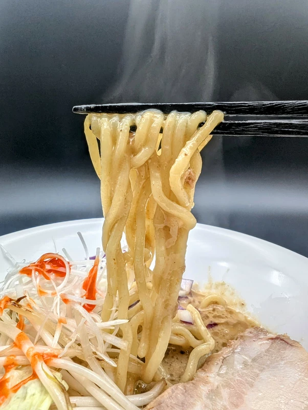 スープは豚骨、鶏ガラ、モミジといった動物系をベースに、京都白味噌、信州淡色味噌などの芳醇な味噌ダレを合わせた濃厚味噌白湯。