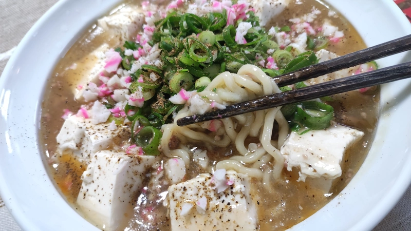 スープは、シッカリとした醤油が効いていて、黒胡椒のパンチがとても効いていました!もう少し、甘味が有ってもと思い、マヨネーズをトッピングしたら、まろやかになり醤油のトゲが和らぎ、とても美味しかったです